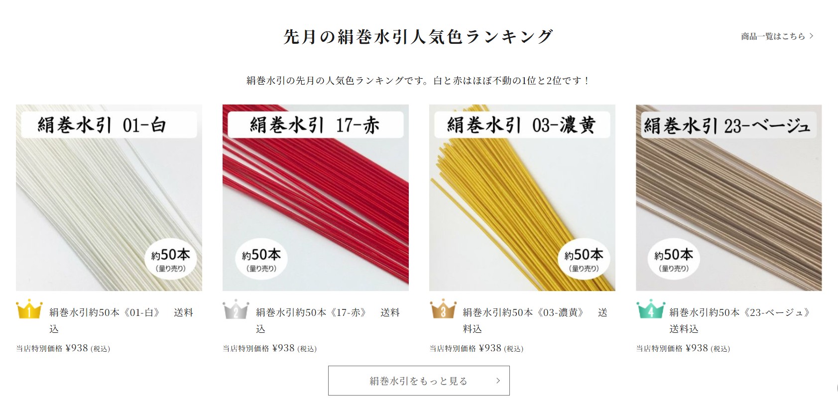 今回のキャンペーンでは、9月の「絹巻水引人気カラーランキング」上位4色のうち、お薦めの2色をピックアップし、おまけとしてプレゼントします!
