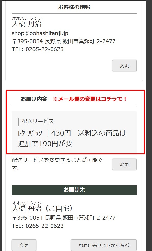 レターパック対応可の商品の配送方法をレターパックへ変更する方法です。