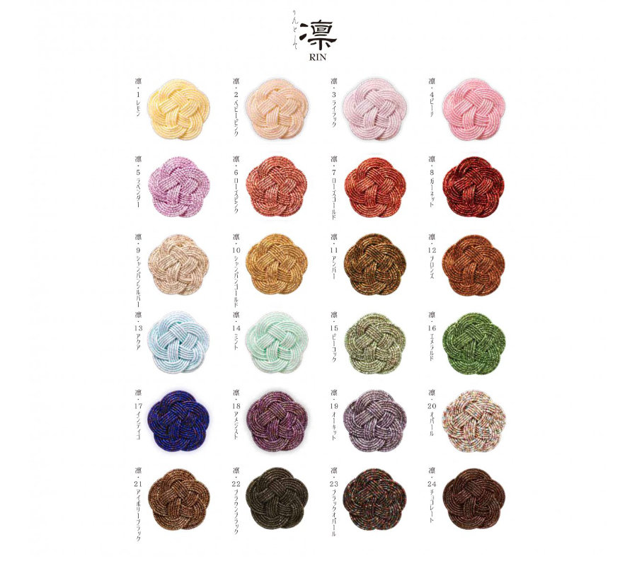 | 絹巻水引> | 絹巻水引と花水引は、マットで落ち着いた色が特長です。 なめらかでしっとりした手触りです。 |