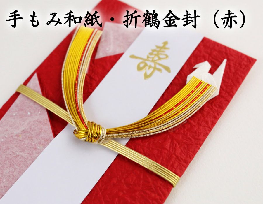 他の画像を見る 水引屋の作った上質水引、国産で手作りした金封(祝儀袋) ご祝儀袋・手もみ和紙 折鶴金封(赤)TK572 送料込 代引便は不可 配送日時指定は不可 クリックポスト発送 一部決済NG 送料込 まとめ割引(手作りキット、ご祝儀袋) 定価 ¥ 680 のところ 当店特別価格 ¥ 593 税込 水引屋の作った上質水引、国産で手作りした金封(祝儀袋)。手もみ和紙に折鶴金封がついた非常に高級感あるご祝儀袋です。